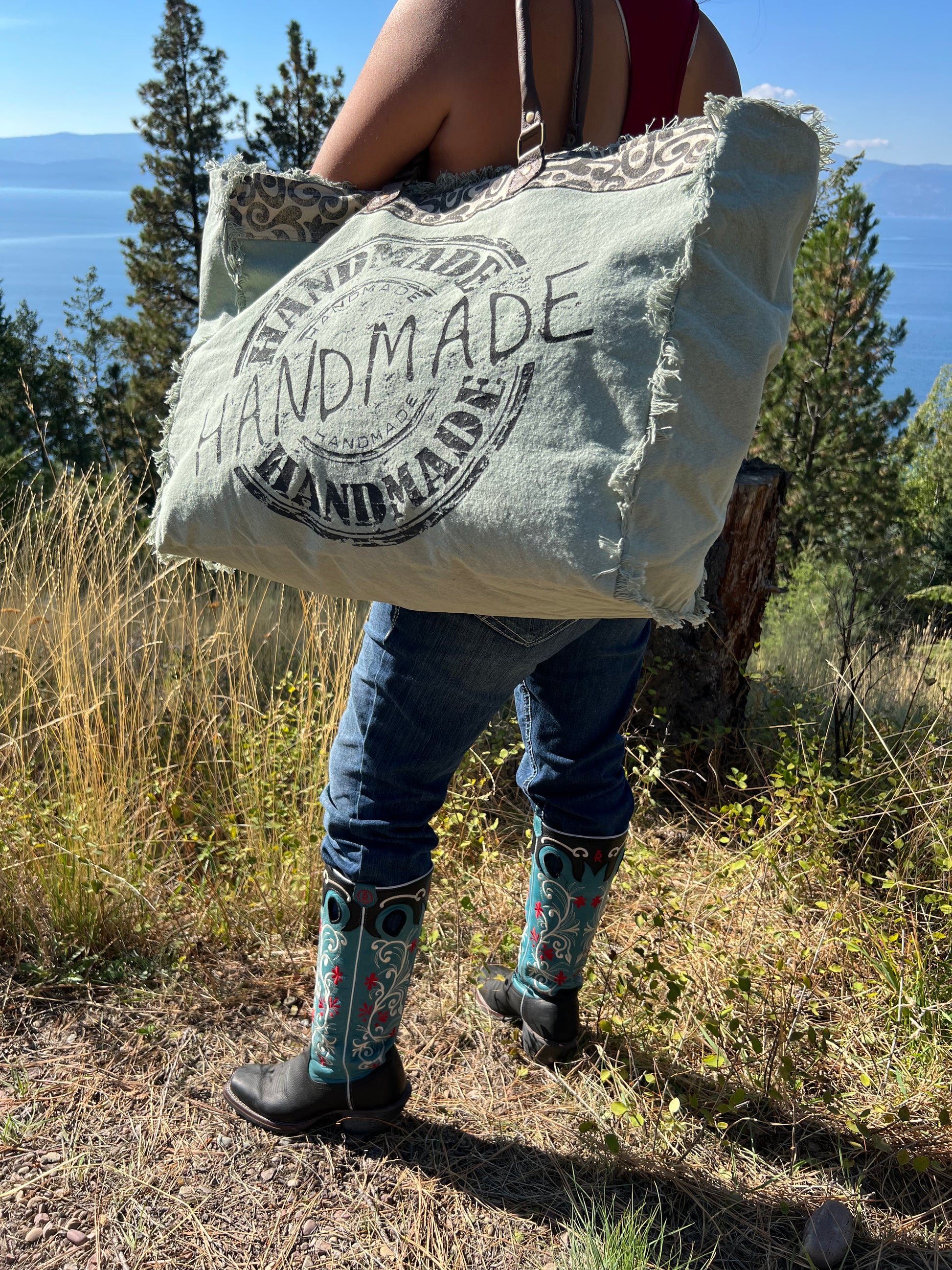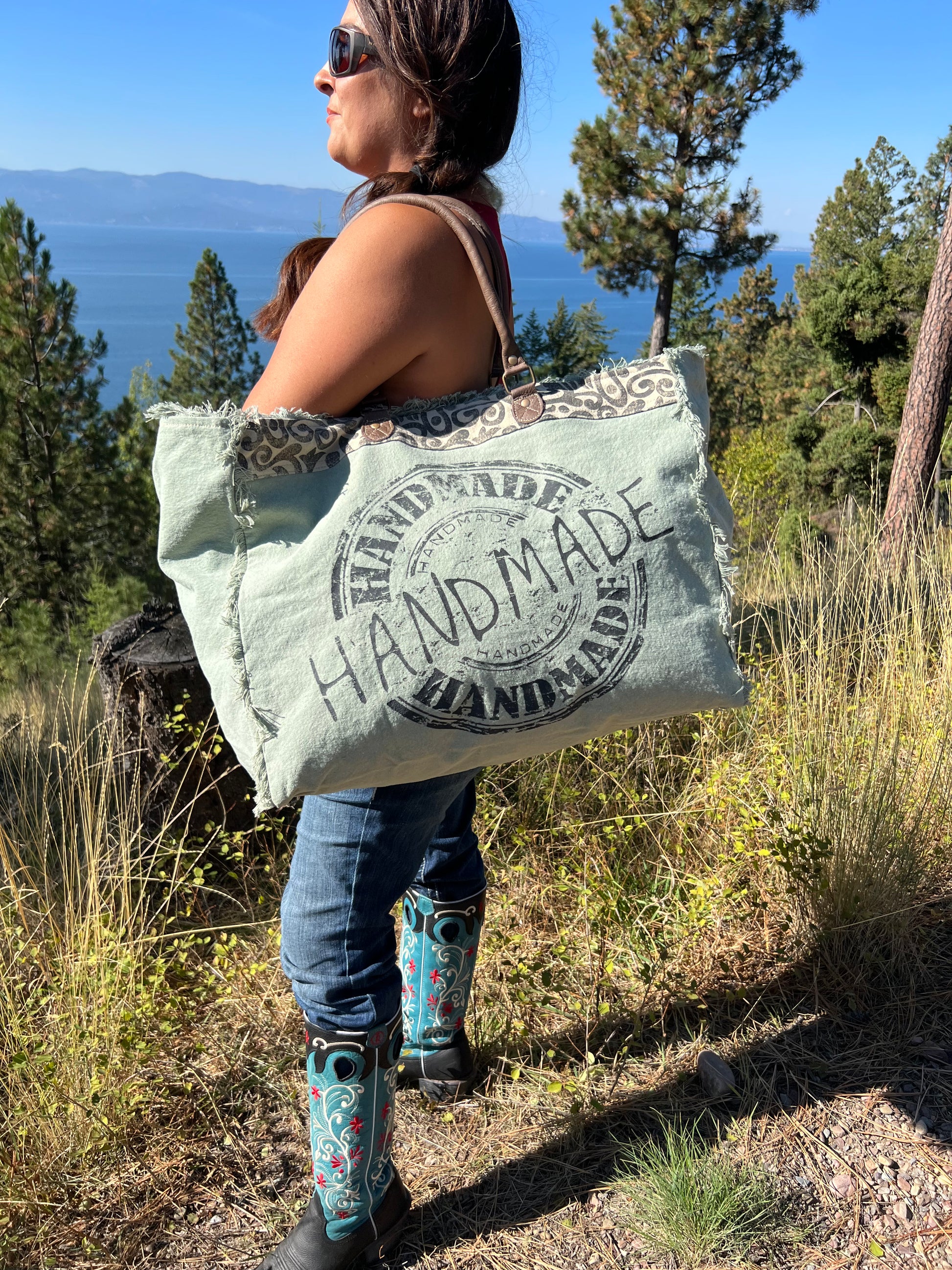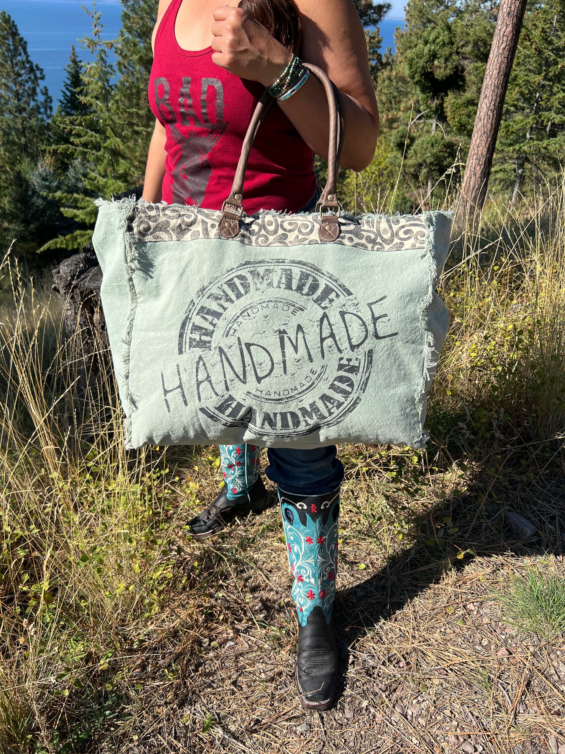 Myra Bag Handmade Canvas Leather Weekender Tote Bag