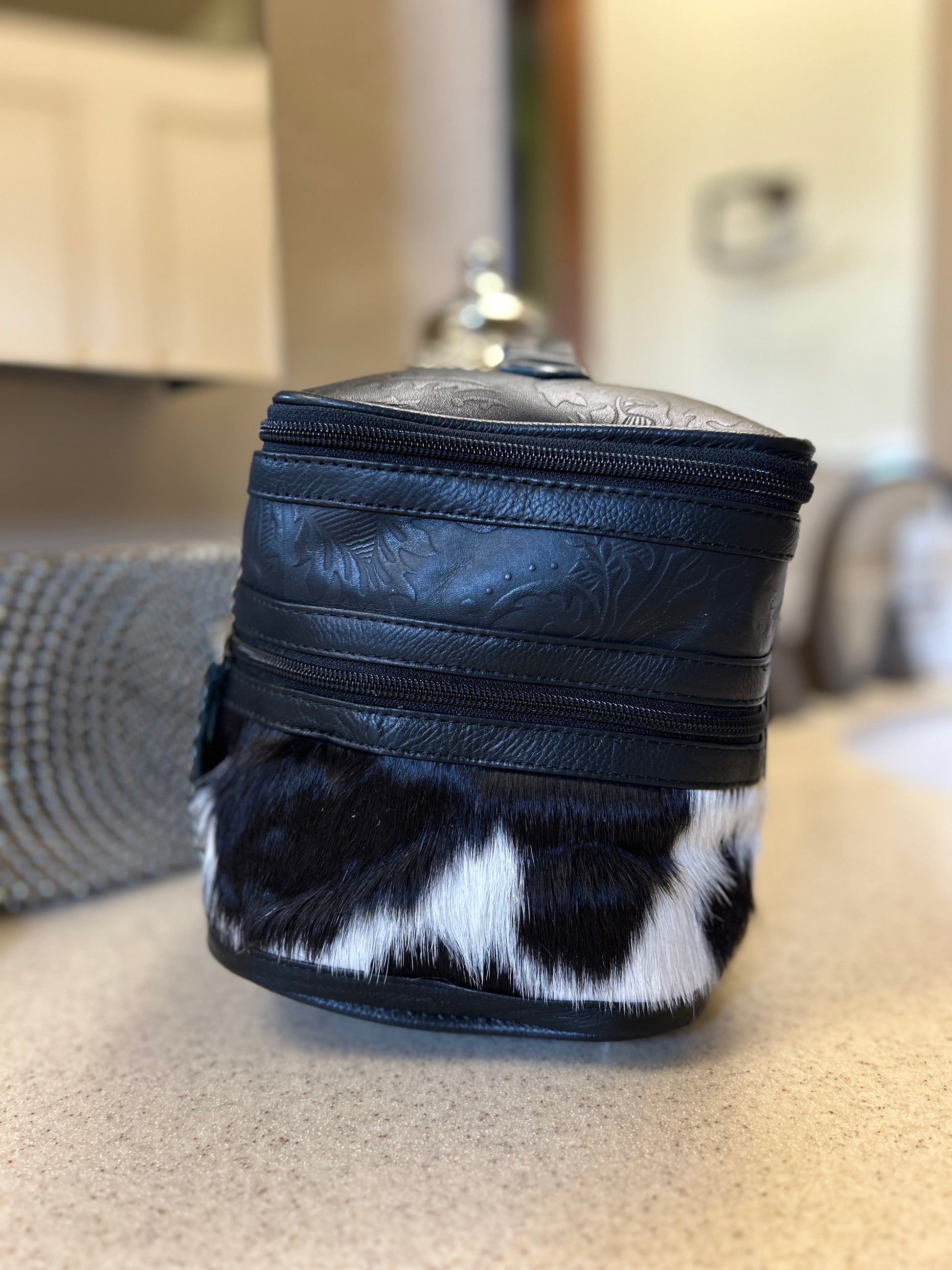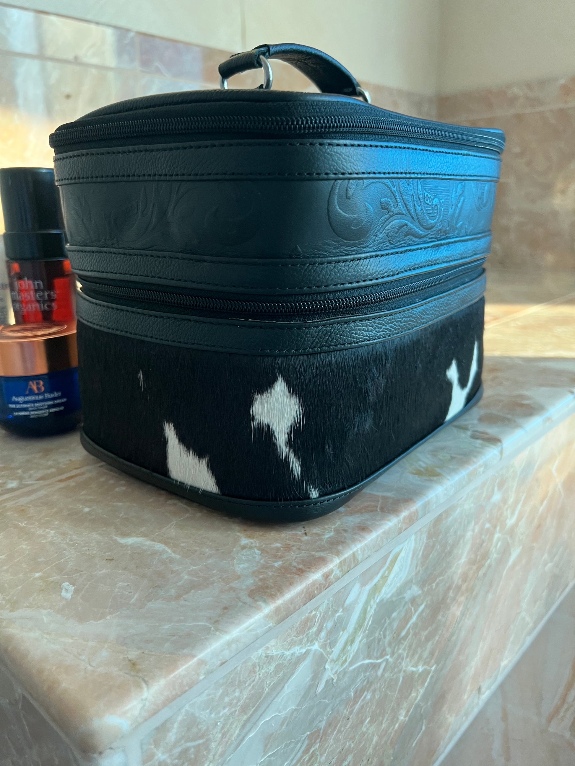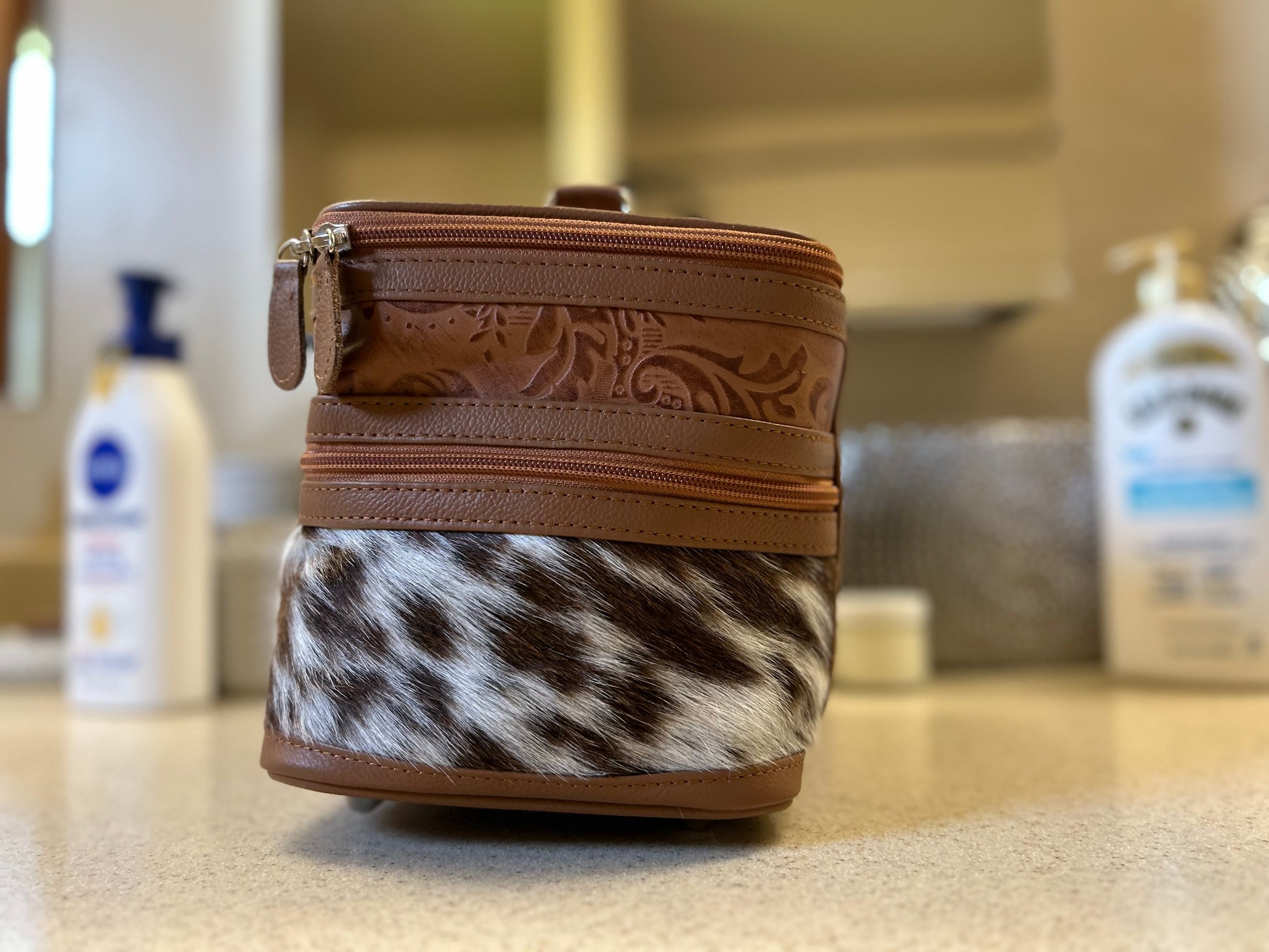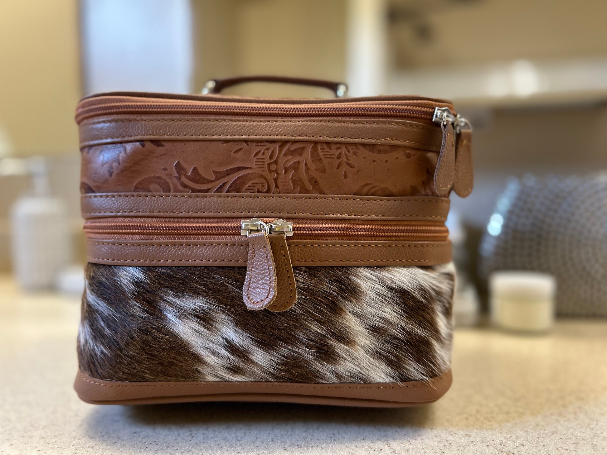 Embossed Leather & Genuine Cowhide Make-up cosmetic travel bag case