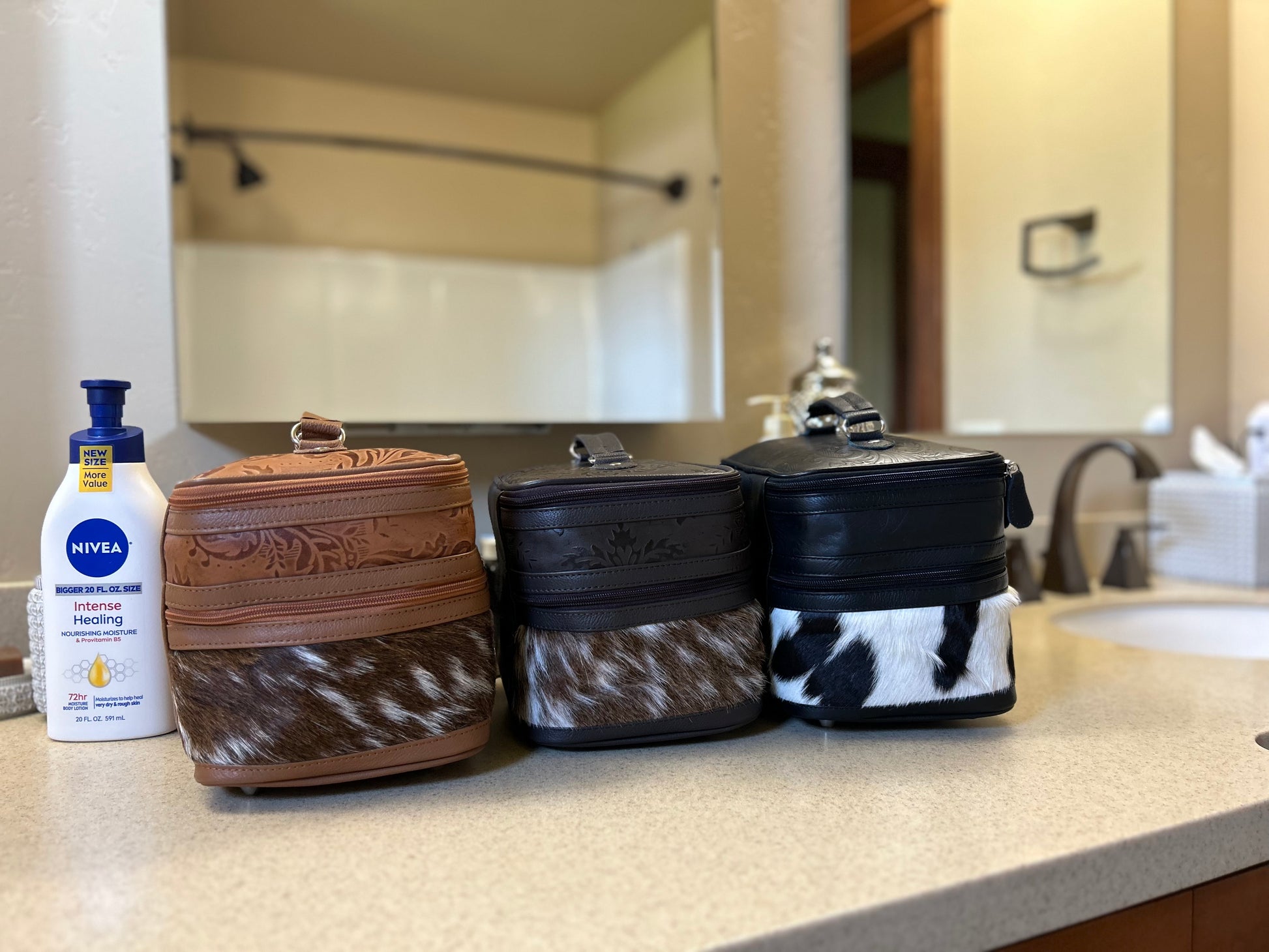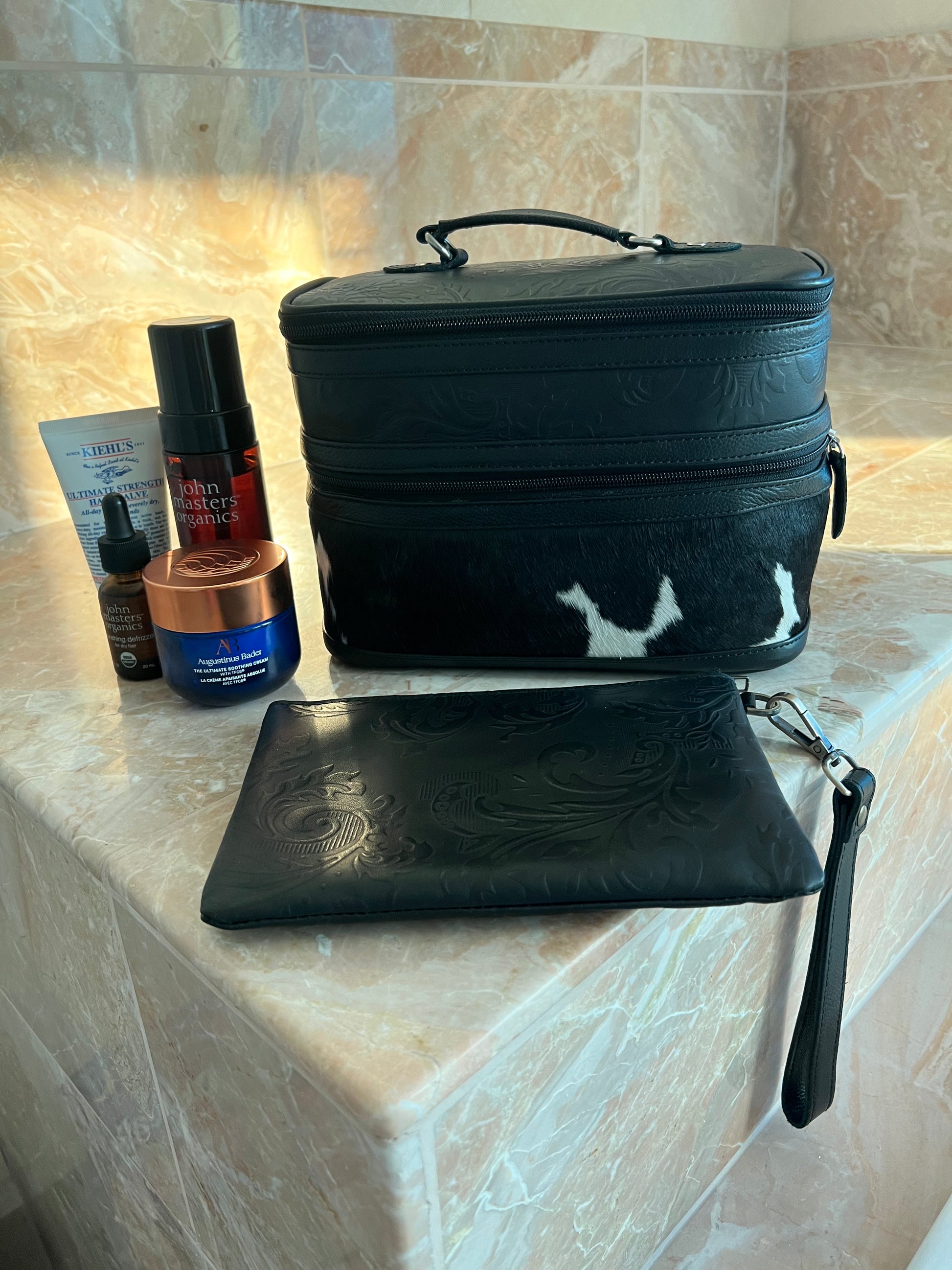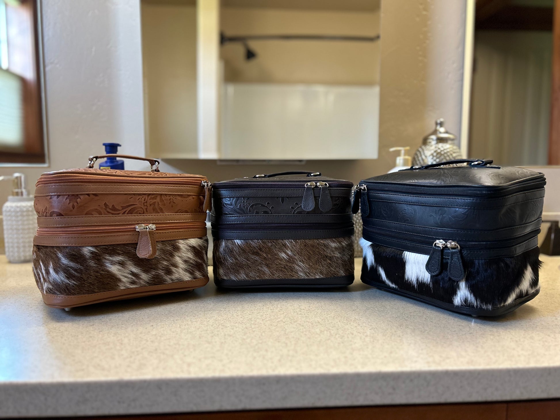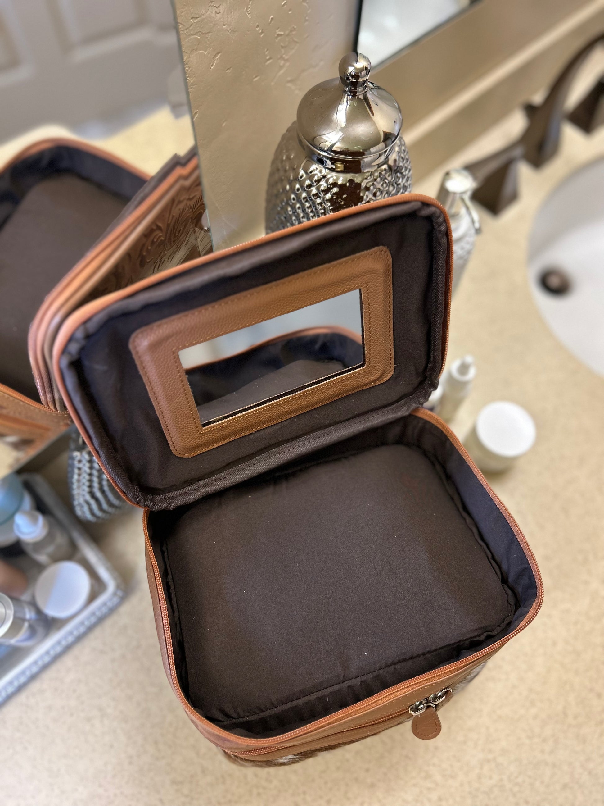 Embossed Leather & Genuine Cowhide Make-up cosmetic travel bag case