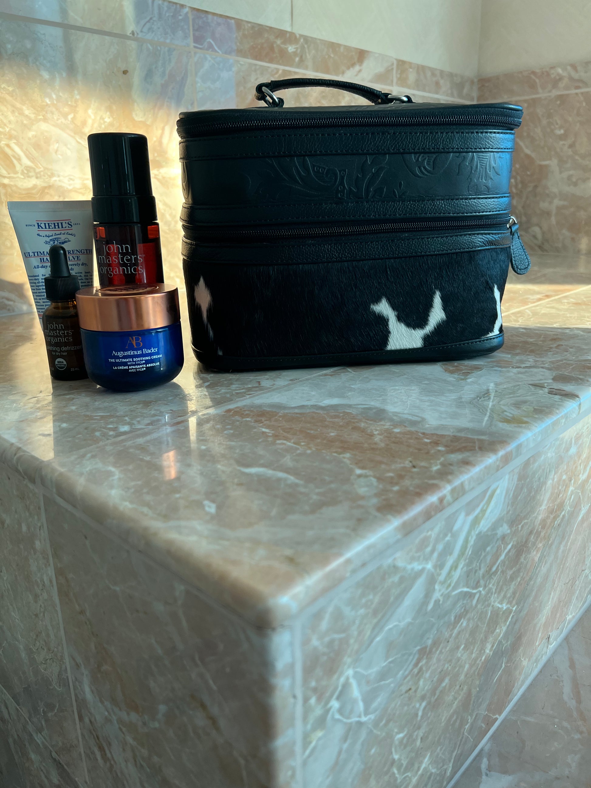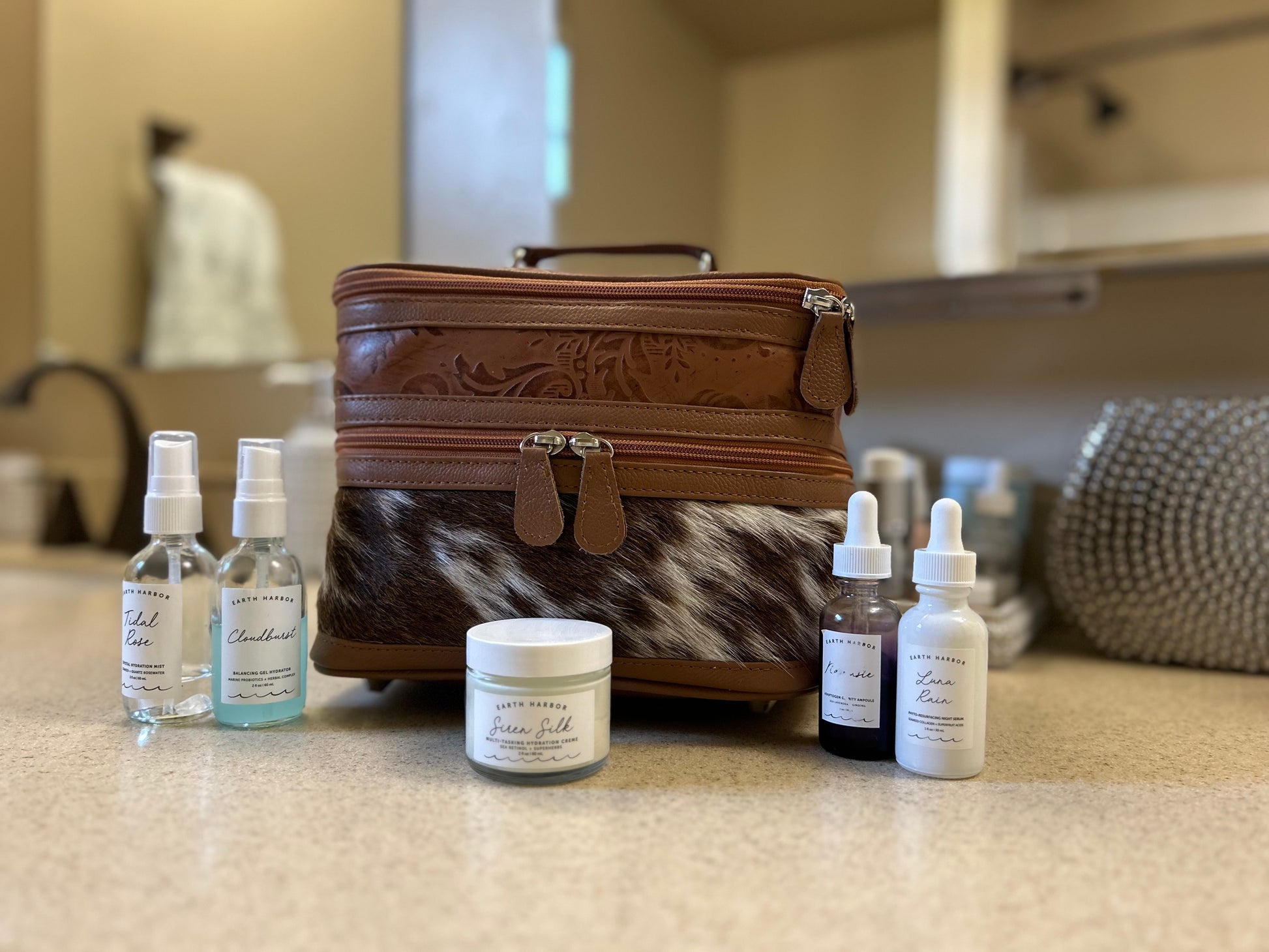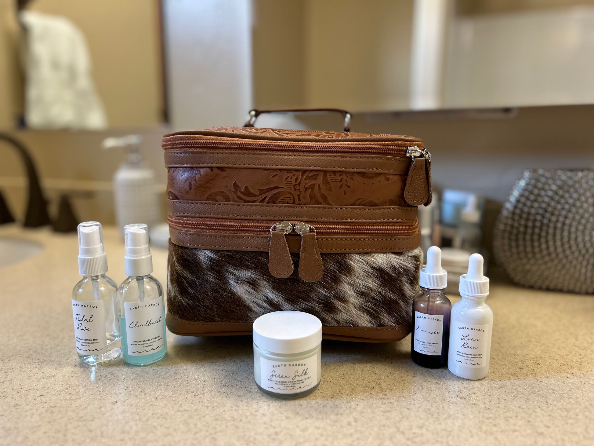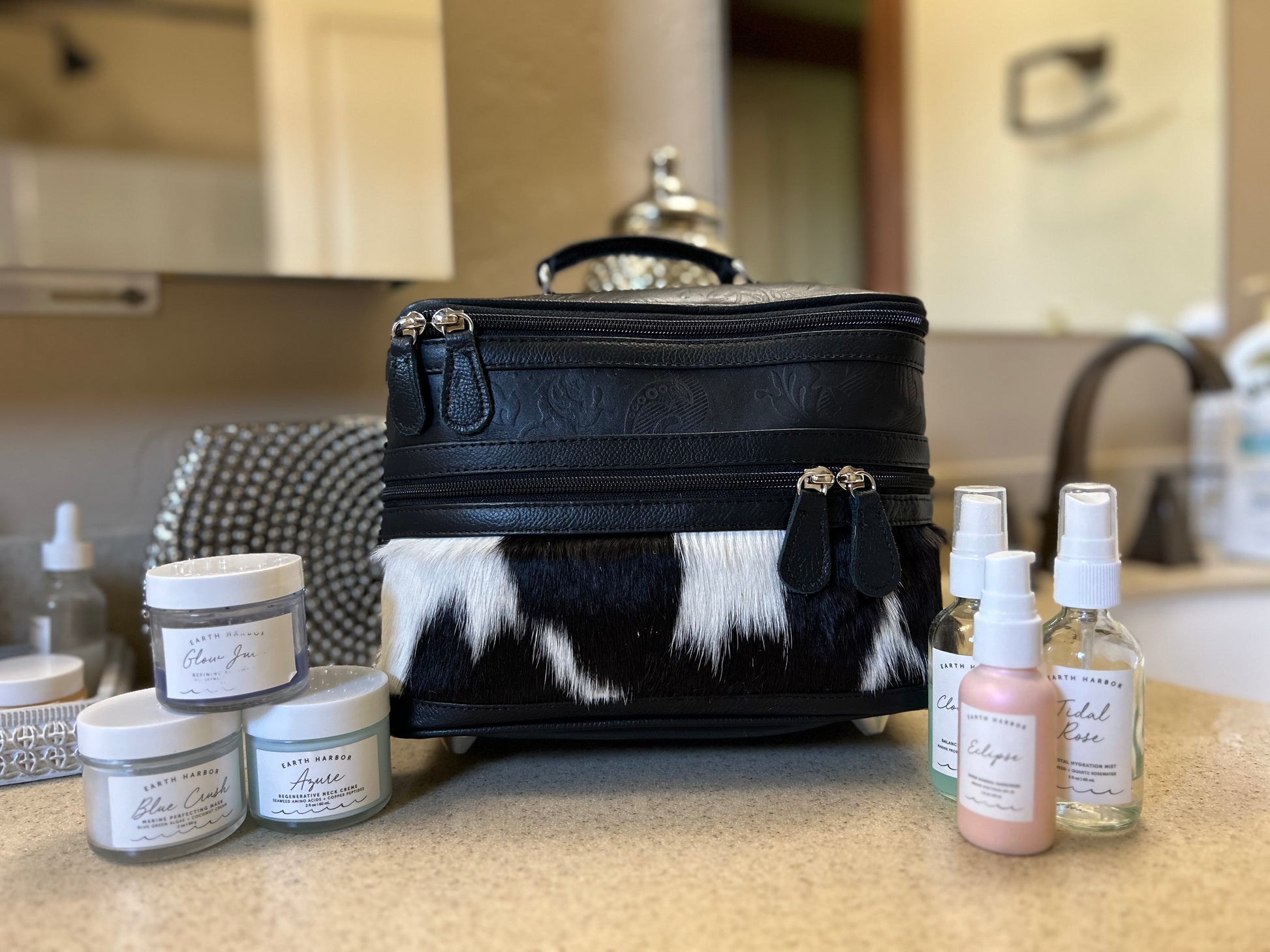 Embossed Leather & Genuine Cowhide Make-up cosmetic travel bag case