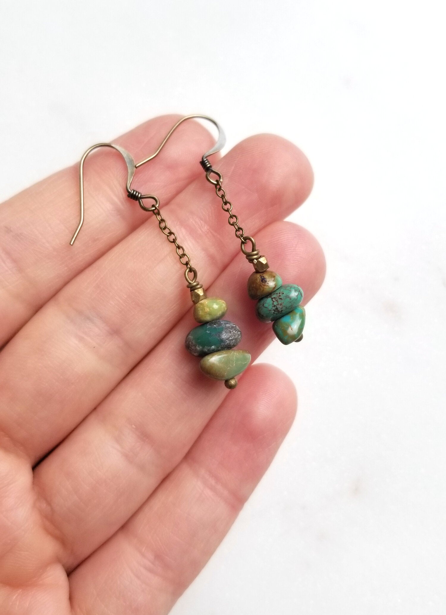 Genuine Turquoise Brass Earrings Hand-Made in USA by Edgy Petal