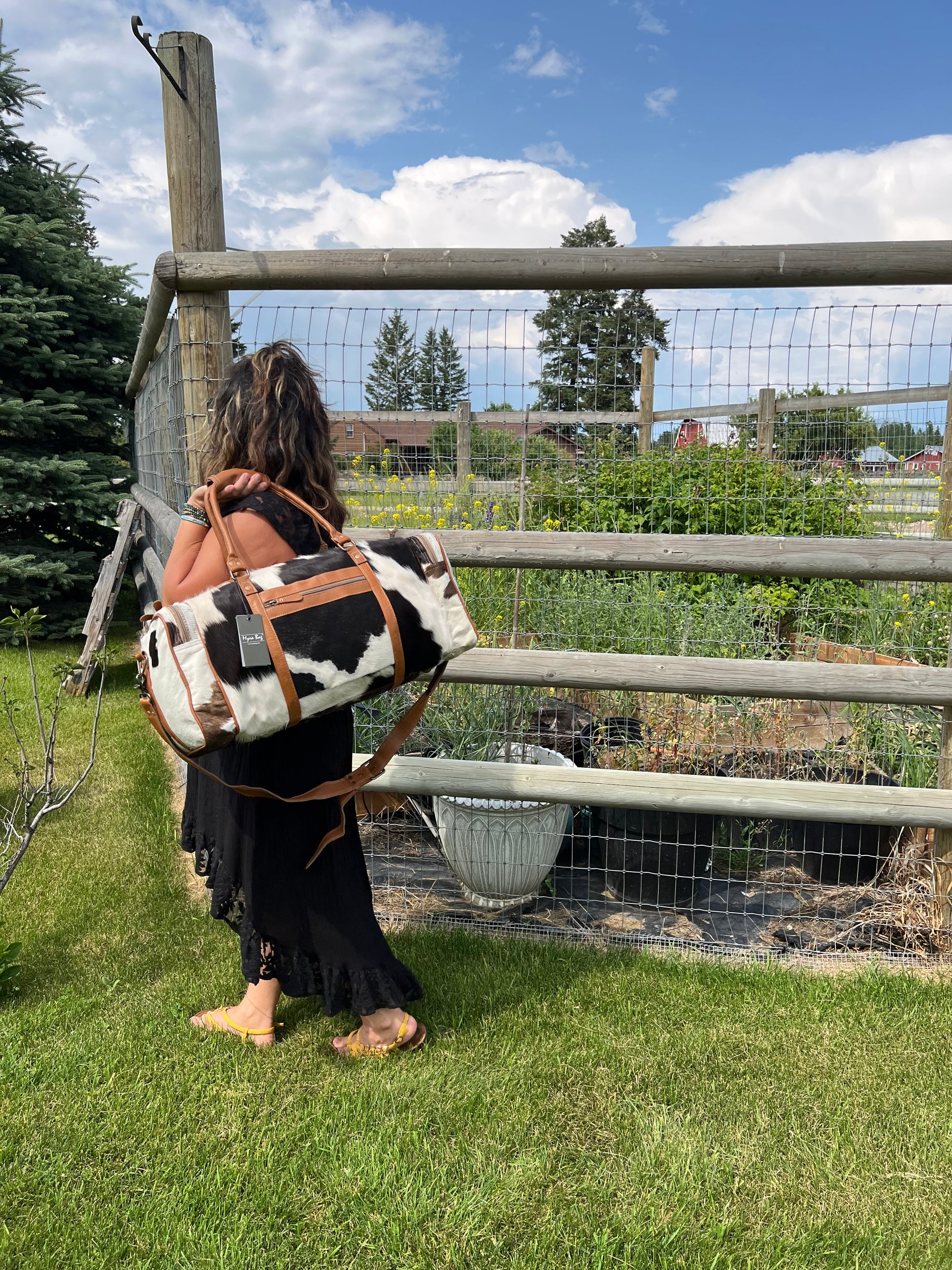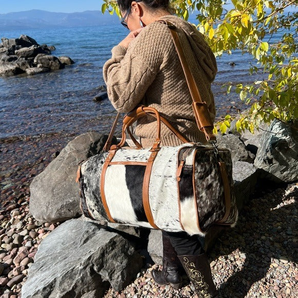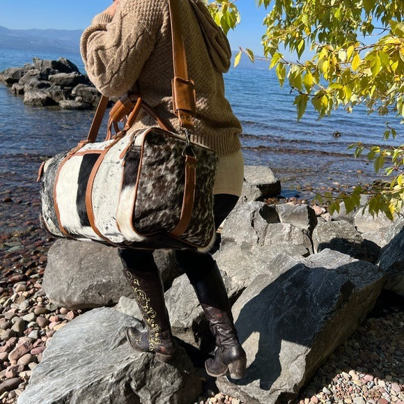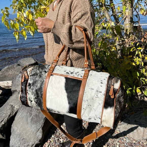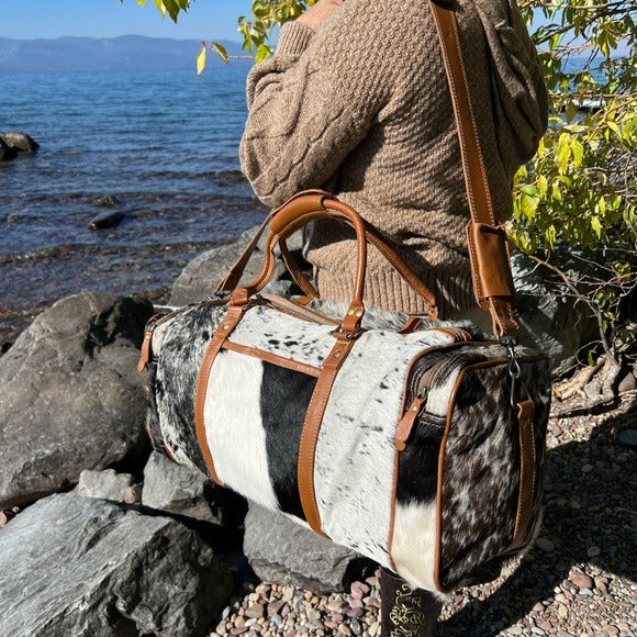 Amazing Unisex Myra Bag Amore Cowhide Hair-On Duffel Bag Travel Bag