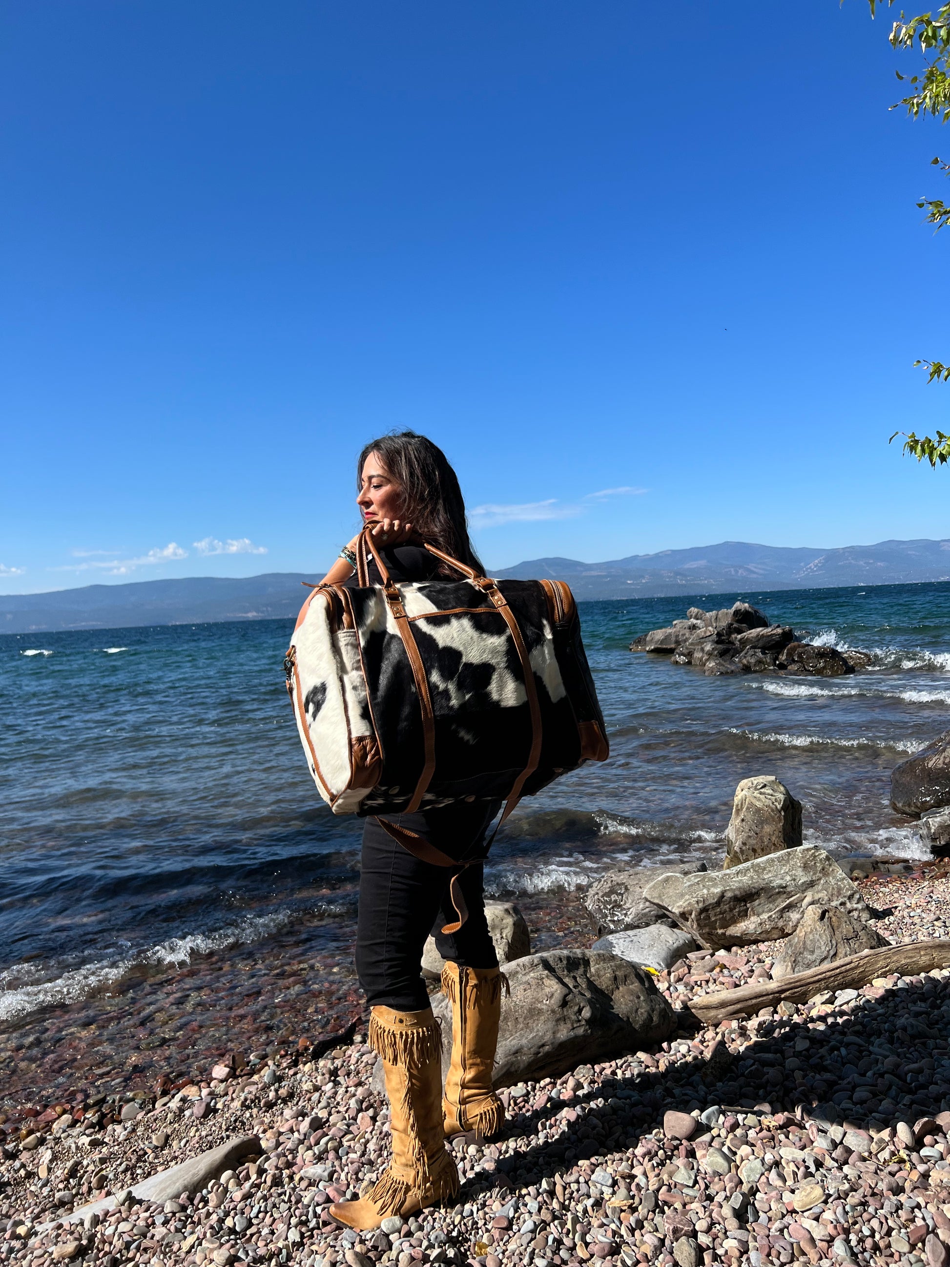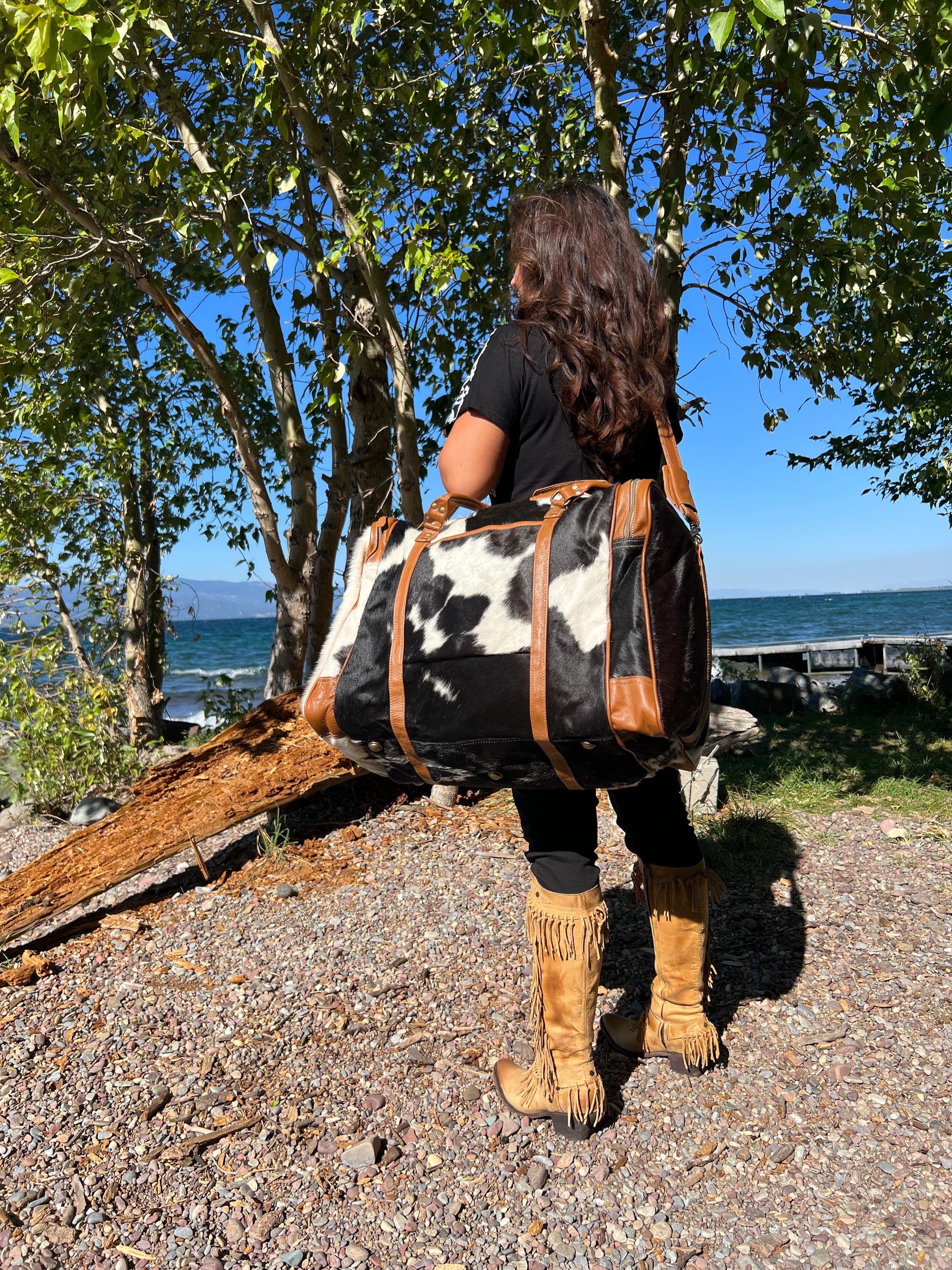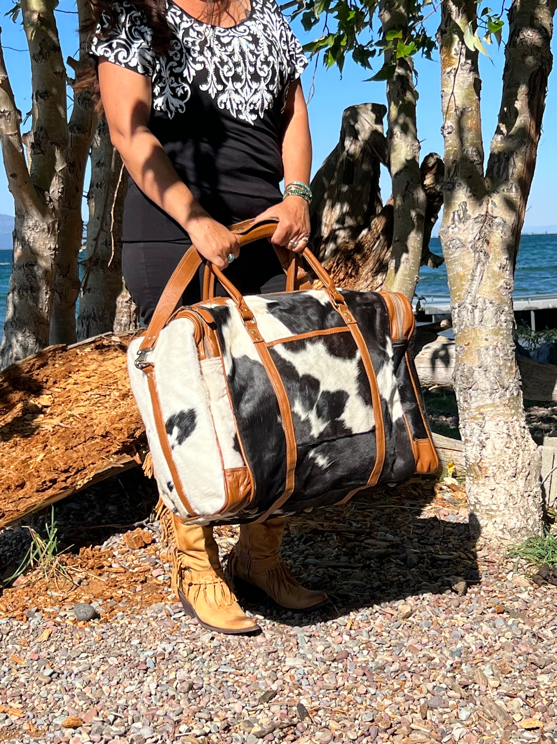 Myra Bag Cowhide Hair-On Grand Duffel Extra Large Unisex Weekender Travel Bag