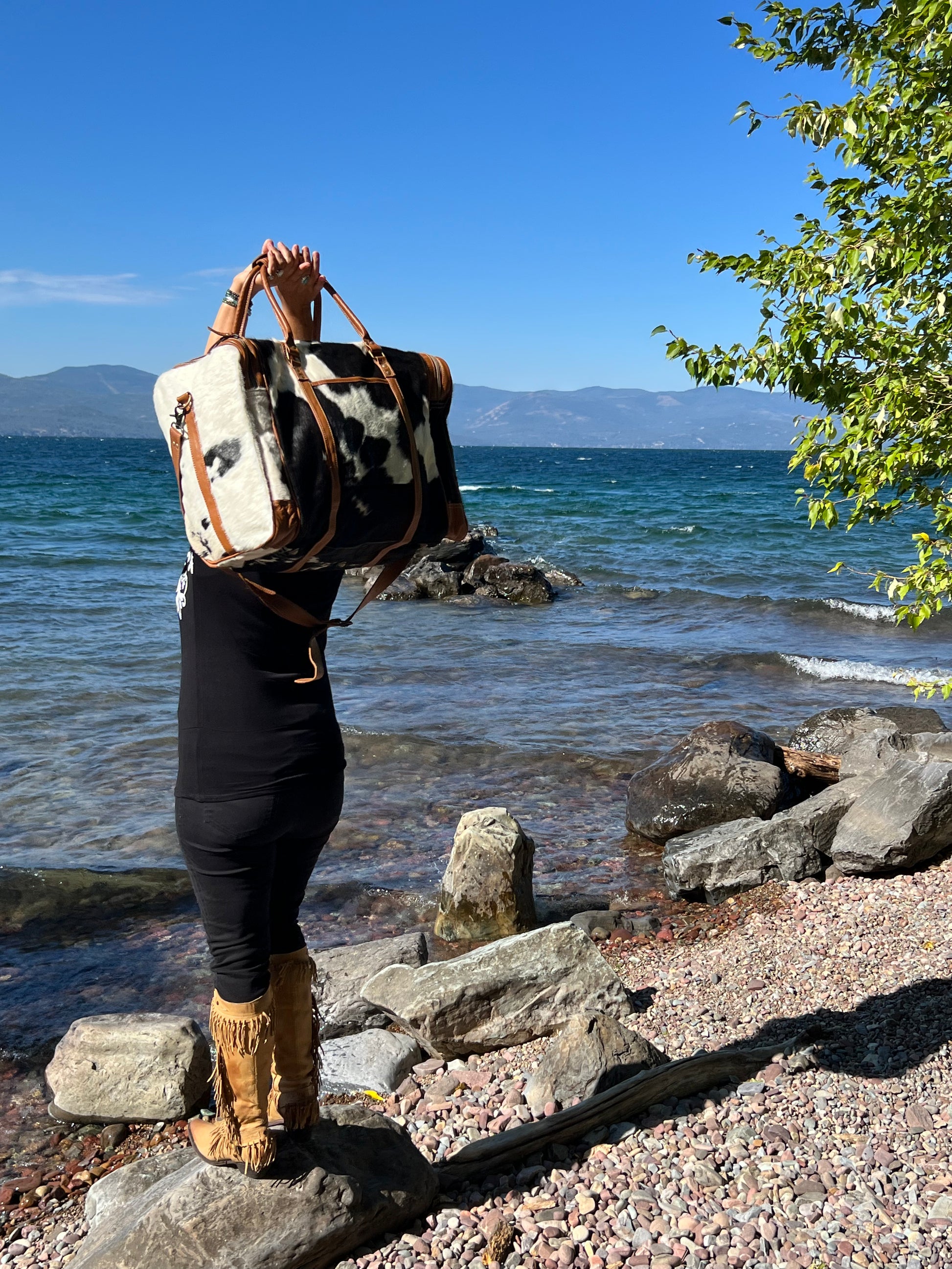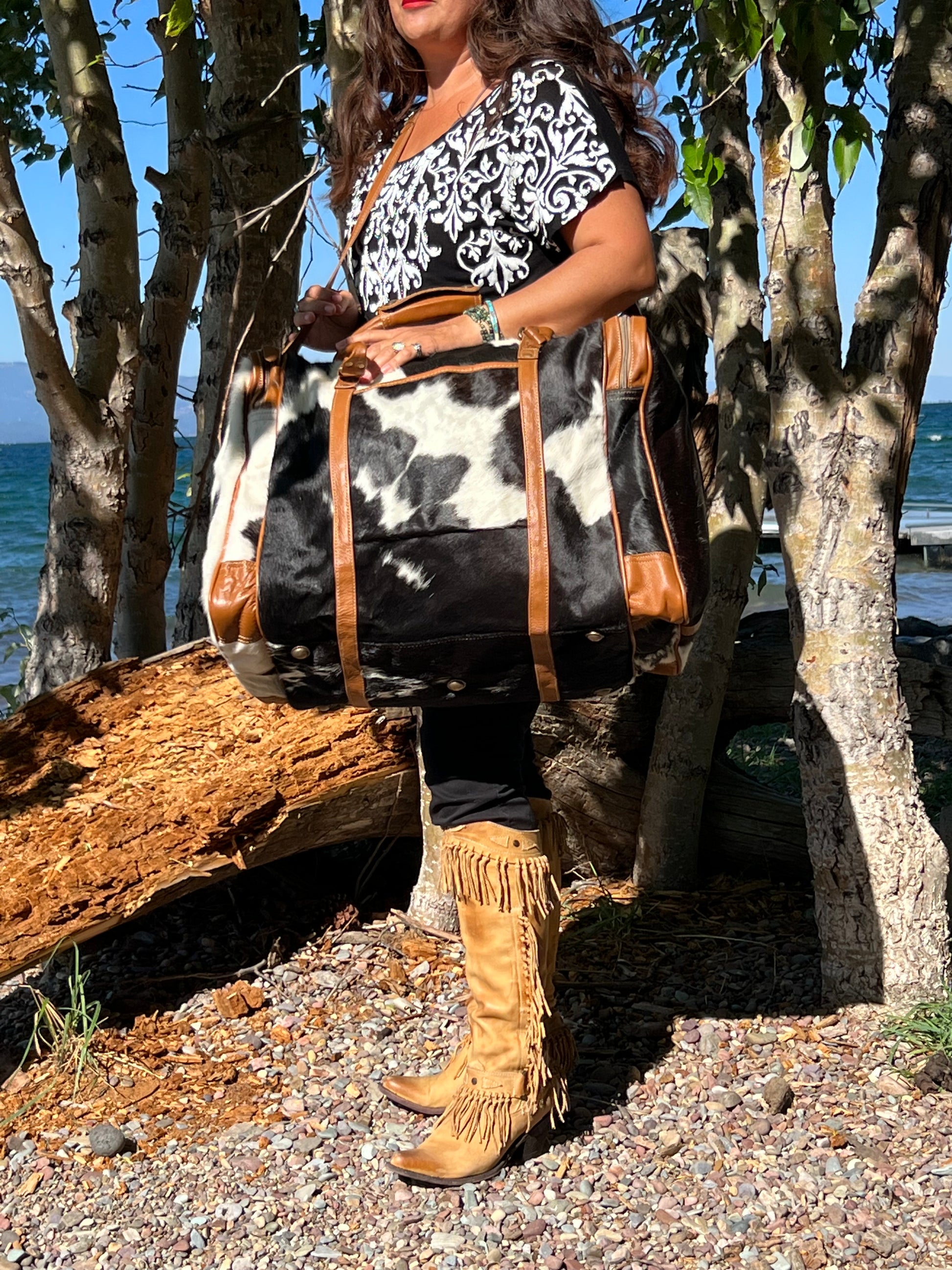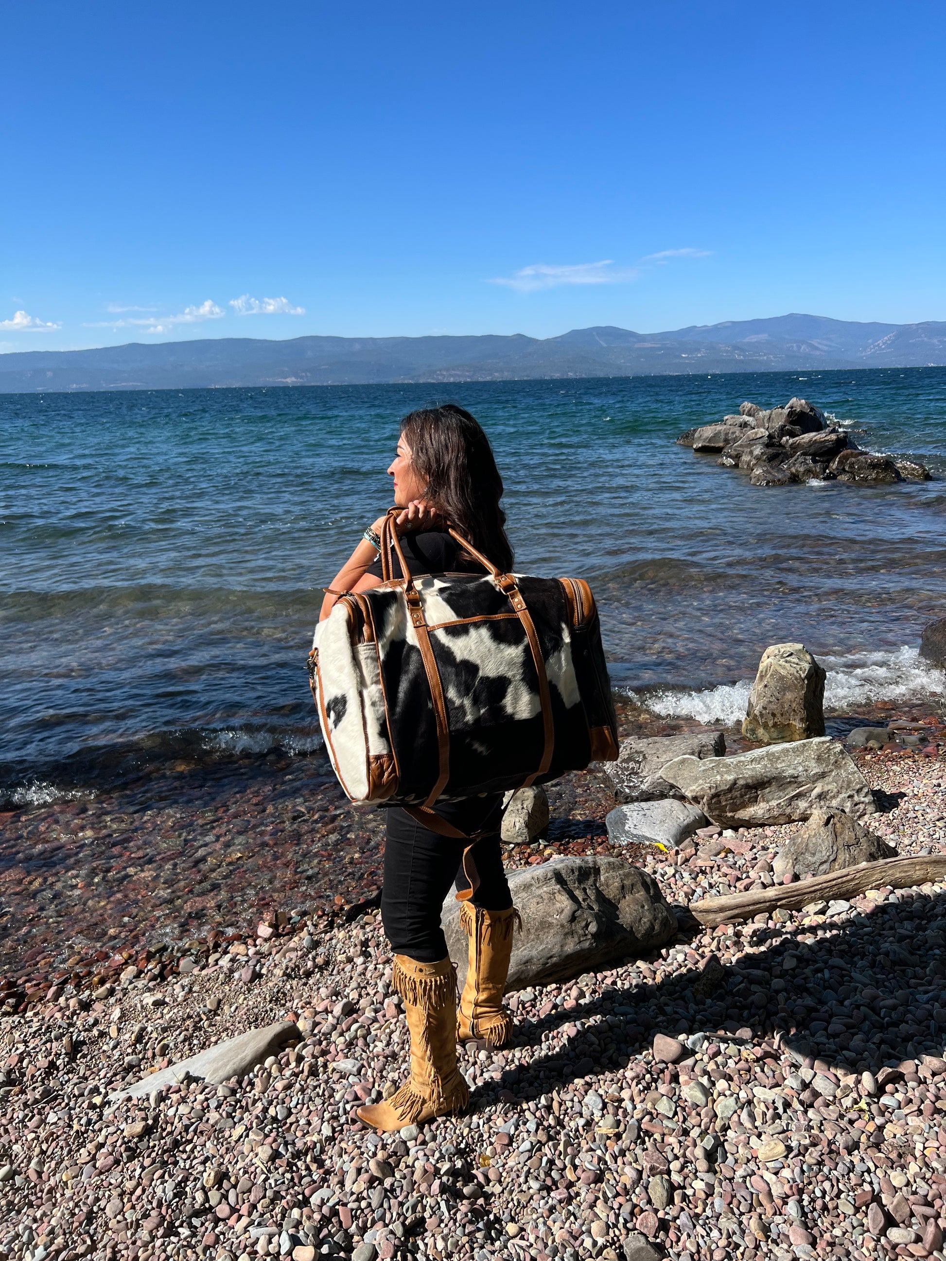Myra Bag Cowhide Hair-On Grand Duffel Extra Large Unisex Weekender Travel Bag